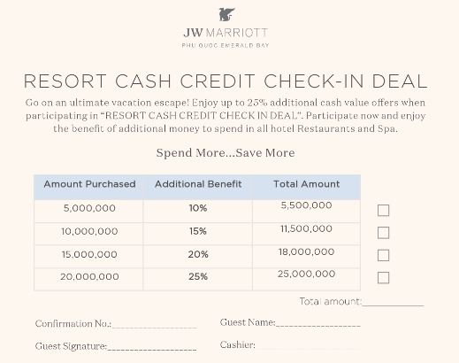 JWマリオット・フーコックにはチェックイン時限定のリゾートクレジットがあります