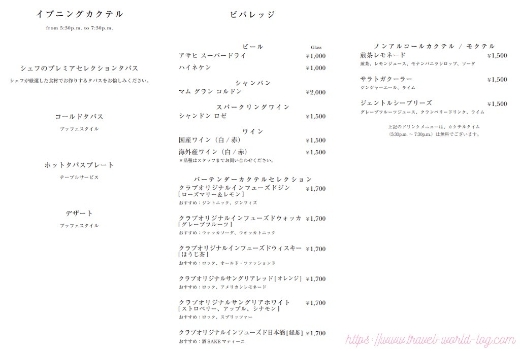 現在はクラブラウンジでのサービス内容、時間が日によって流動的です。