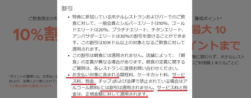 マリオットレストラン割引を利用すると10%~20%の割引が適用されます。