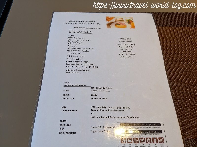 各朝食会場、インルームダイニングの朝食についてご紹介しました。