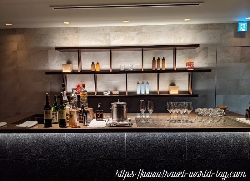 ドリンクコーナーのカウンターにはウィスキーやリキュール類が用意されます。