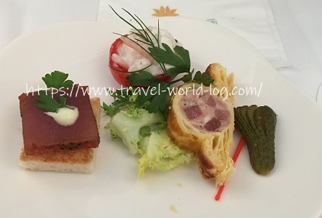 残念ながら、和食の前菜が品切れとのことで、和食を選んだ主人は前菜が洋食でメインが和食というミックスでの提供となりました。